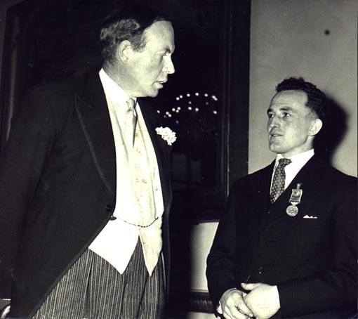 Tom being presented with his B.E.M. (British Empire Medal) by Lord Halifax